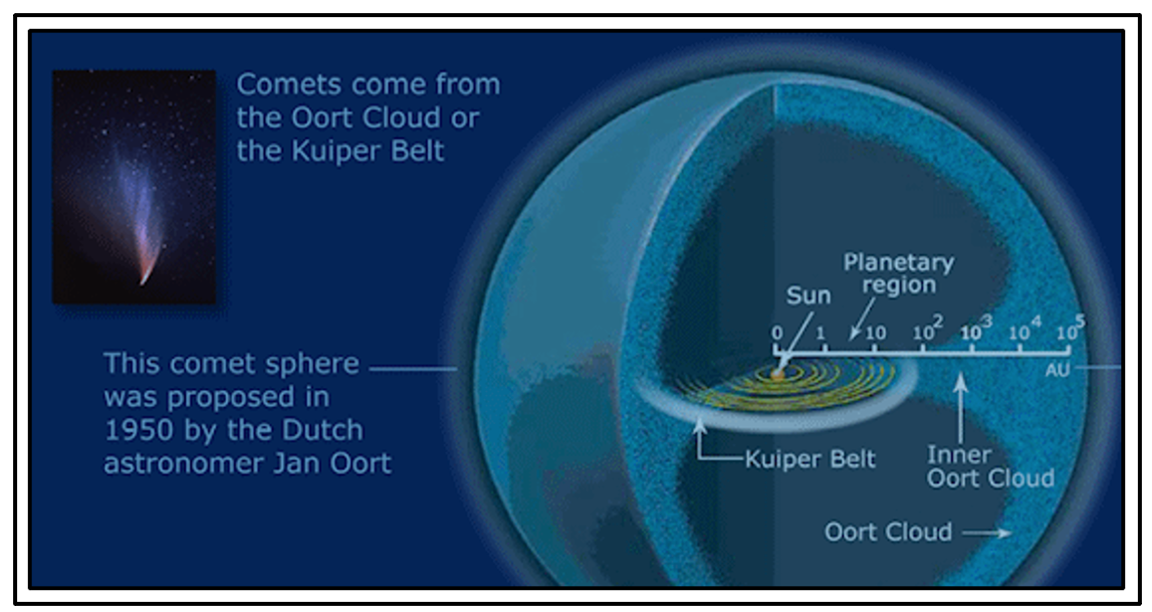 Comets are generally named for their discoverer either a person or a spacecraft. Such nuclei may travel out of the cloud when disturbed by the gravitational force of a nearby star and enter the inner solar system. A spherical region that surrounds the solar system that extends from the Kuiper Belt to almost halfway to the nearest star and that contains billions of comets. 10 points ambaer8371 Asked 01072020. Extends from Kuiper Belt to almost halfway to the nearest star-contains billions of comets. A Oort cloud is a spherical region of comets that surrounds the solar system out to more than 1000 times the distance between Pluto and the sun. Its thought to have arisen from an amorphous cloud of gas and dust in space.